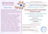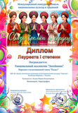 Дипломом за 1 место VII Международного конкурса многожанровой культуры народов "Палитра культур" награжден танцевальный коллектив "Нармоннят" (педагог Навратова С.П.)