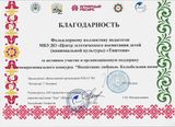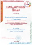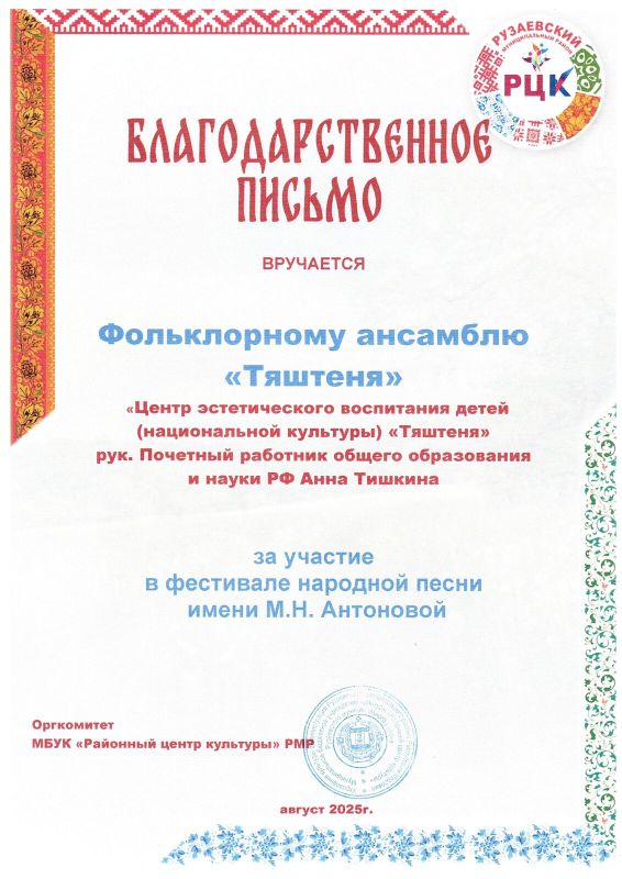 Благодарственным письмом Фестиваля народной песни имени М.Н. Антоновой награжден Фольклорный ансамбль «Тяштеня»