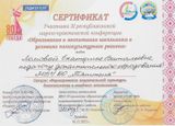 Сертификатом участника III Научно-практической конференции «Образование и воспитание школьников в условиях поликультурного региона» награждена Миронова Л.И.