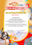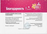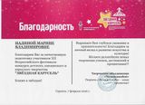 Благодарностью Всероссийского фестиваля-конкурса детского, юношеского и взрослого творчества «Звездная карусель» награждена Надина М.В.