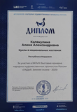 Дипломом участника XXXVIII Выставке-ярмарке народных художественных промыслов России «Ладья. Зимняя сказка – 2025» награждена Калякулина А.А.