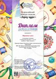 Дипломом за 1 место Международного конкурса волшебство своими руками (декоративно-прикладное творчество) награждена Миронова Валерия (педагог Миронова Л.И.)