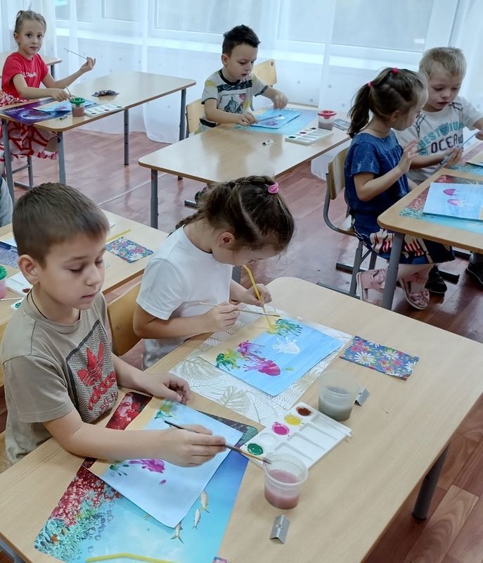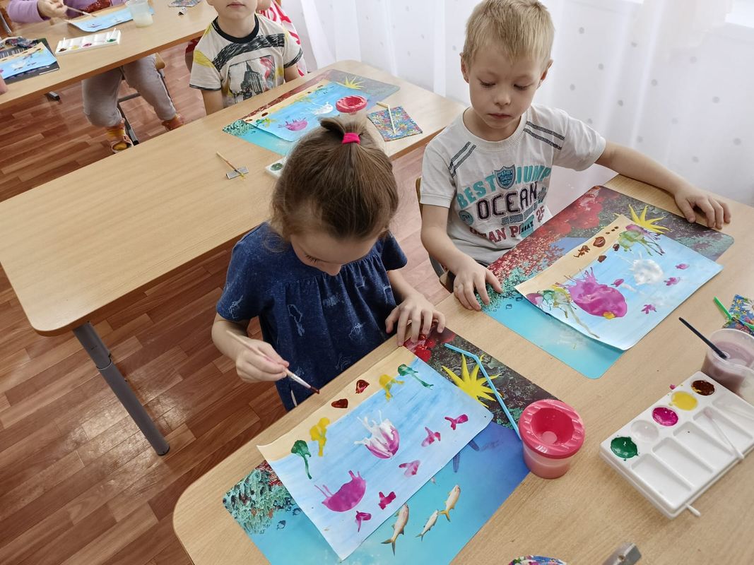 Подводный мир -такой таинственный, завораживающий... Прозрачная вода, жёлтый песок, и каких только обитателей тут не встретишь! Воспитанники детского сада №13 вместе с педагогом Центра "Тяштеня" Кожевниковой Светланой Александровной совершили морское путешествие. Ребята спустились на морское дно, чтобы исследовать подводный мир. После рисовали его в нетрадиционной технике - кляксография с трубочкой. Главной героиней сюжета была Медуза. Все ребята старались, проявили фантазию и показали свои знания о морских обитателях.