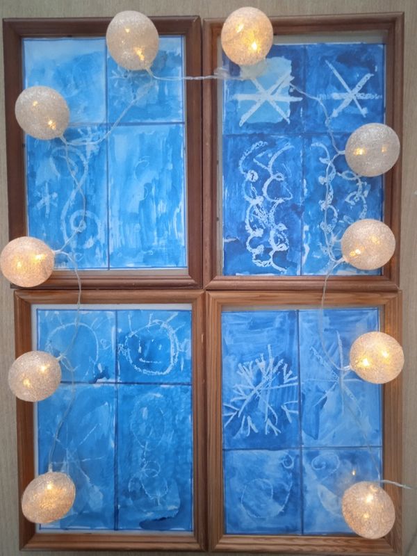 Каждое время года прекрасно по своему. Но только зимой мы можем увидеть на окнах красивые морозные узоры. На базе детского сада № 11 воспитанники творческого объединения «Умейка» вместе с педагогом Центра "Тяштеня" Долганиной Еленой Борисовной нарисовали узоры с использованием нетрадиционной техники рисования восковыми свечами - это смешанная техника рисования акварелью и воском. Основное свойство воска - отталкивать воду. На этом свойстве и основан метод работы в данной технике. Нарисовав узоры воском, ребята закрасили их акварелью и получили вот такие сказочные окна. Ребята поместили свои рисунки в рамки и украсили гирляндой, создав и себе и окружающим новогоднее настроение.