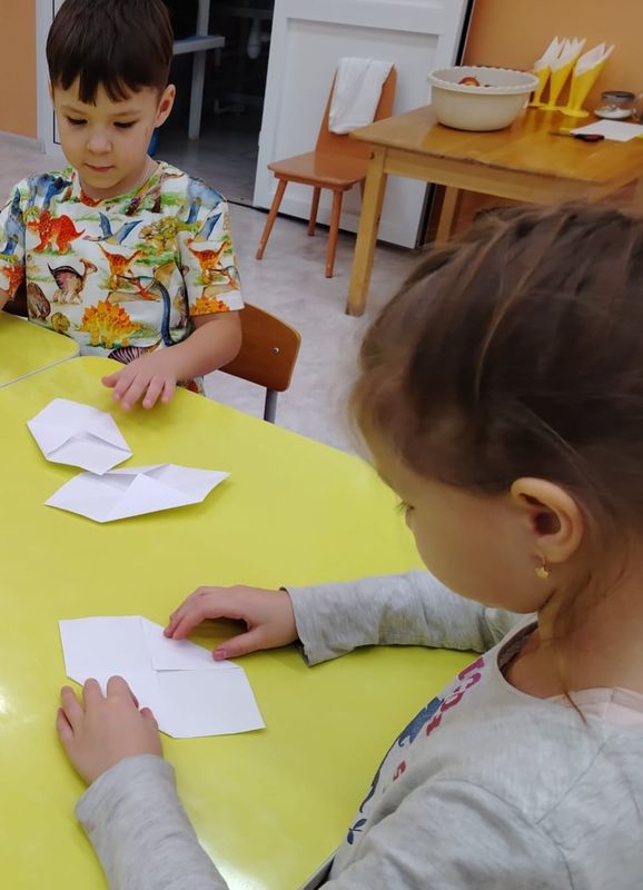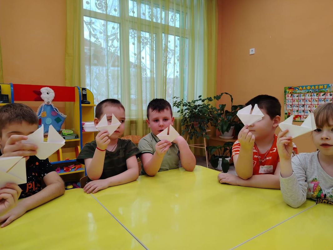 Воспитанники Красносельцовского детского сада вместе с педагогом центра "Тяштеня" Кочкаревой Натальей Валентиновной учились складывать кораблики из бумаги, используя метод оригами.