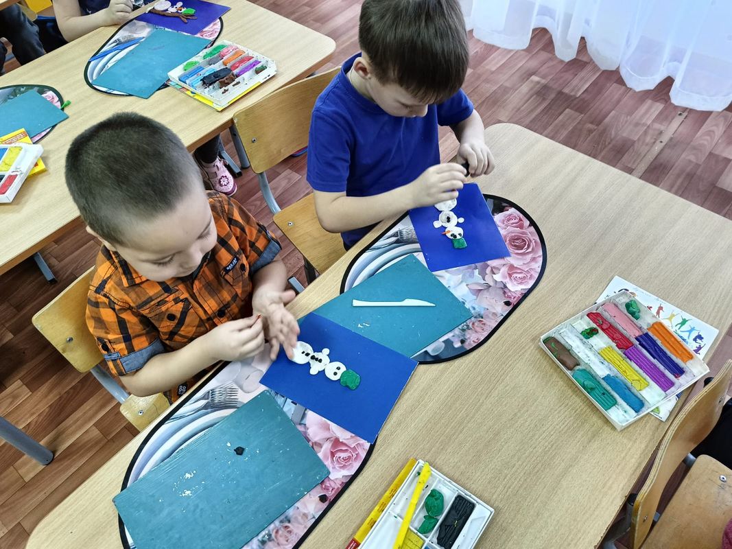 Педагог Центра "Тяштеня" Кожевникова Светлана Александровна на занятиях в детском саду № 13 провела занятие по пластинографии "Весёлый снеговик". Для работы нам понадобился пластилин разных цветов, доски для лепки и стеки, а также немного терпения и умения. И вот какие весёлые, яркие и красочные снеговики у нас получились.