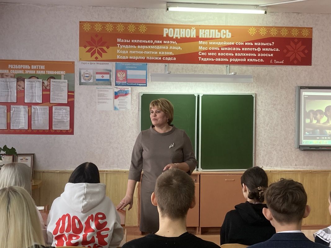 На занятии присутствовала методист Центра «Тяштеня» Родионова Татьяна Алексеевна. Она познакомила ребят с образом матери в искусстве Мордовии.