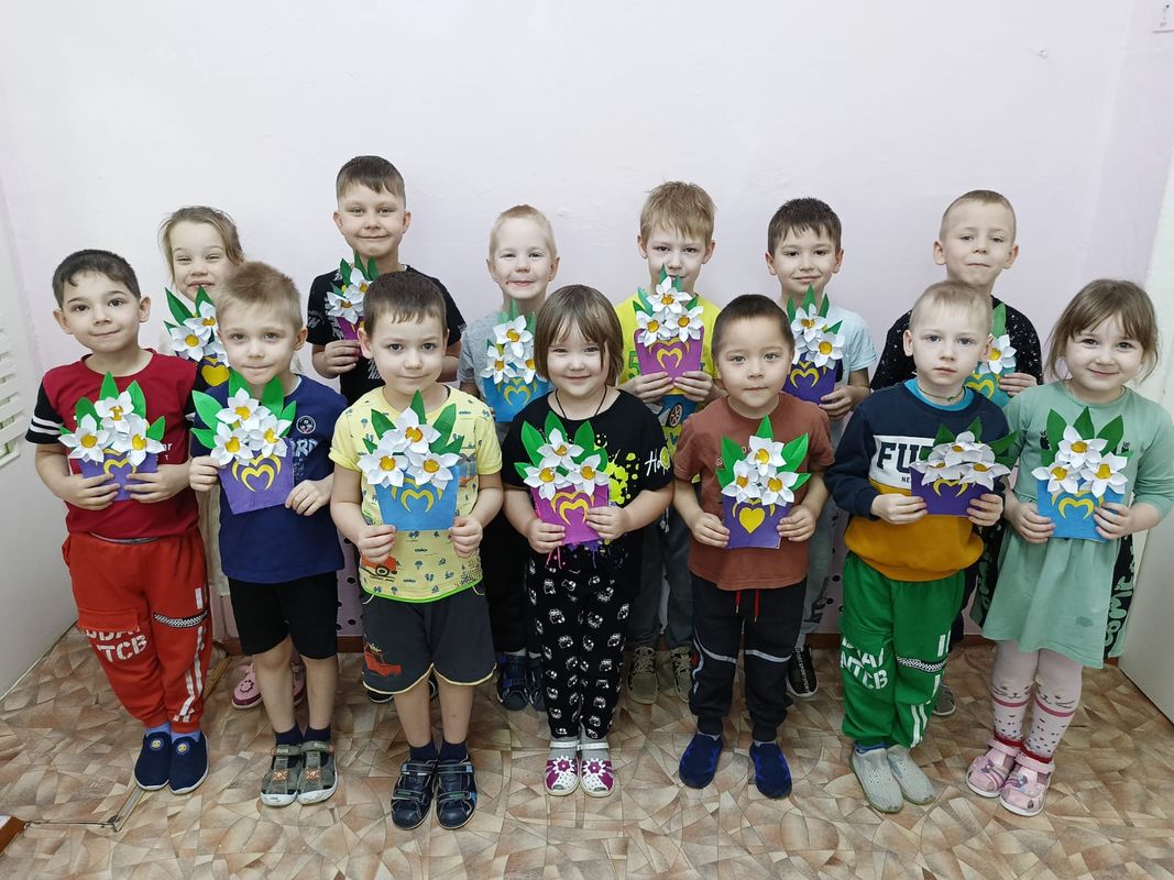 В преддверии праздника - Международного женского дня 8 Марта дети творческого объединения "Умейка" детского сада №13 совместно с педагог Центра "Тяштеня" Кожевниковой Светланой Александровнаной своими руками создали красивые открытки, украшенные цветами.
