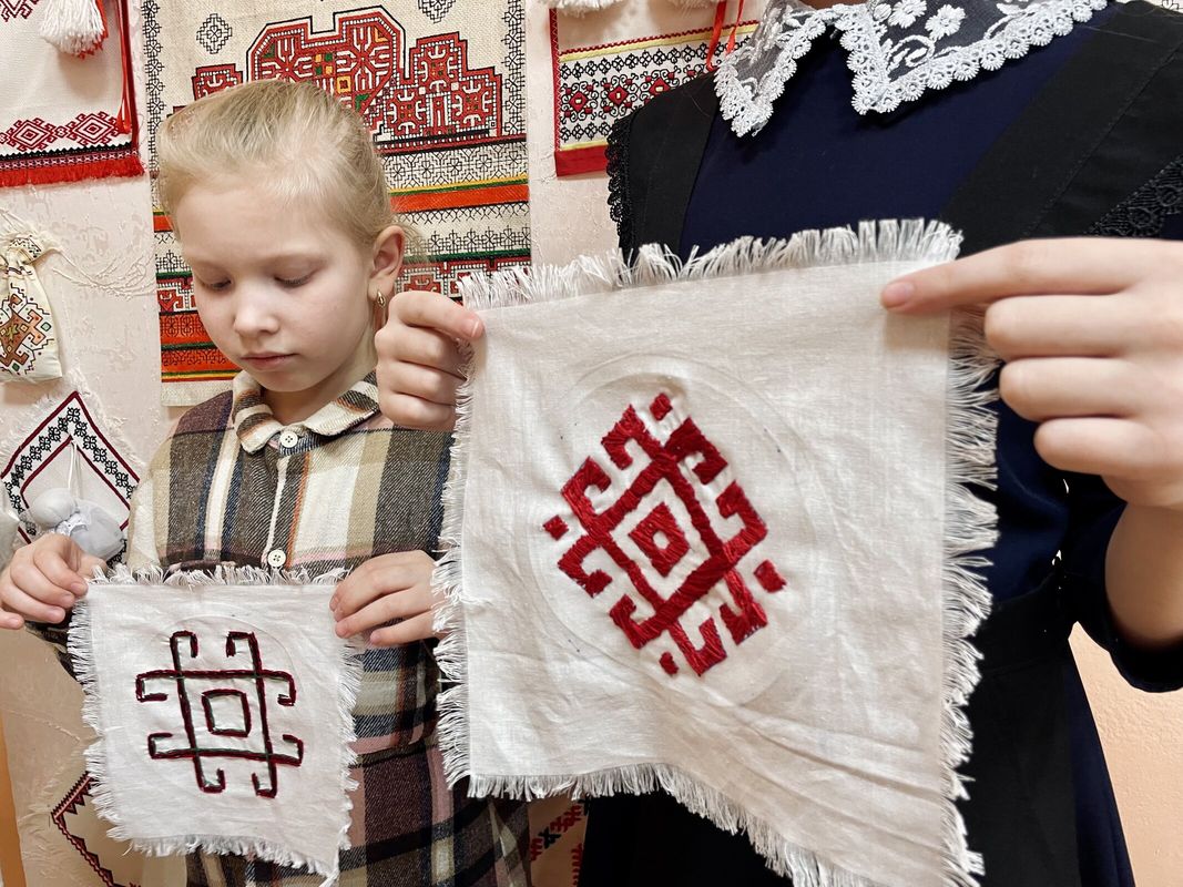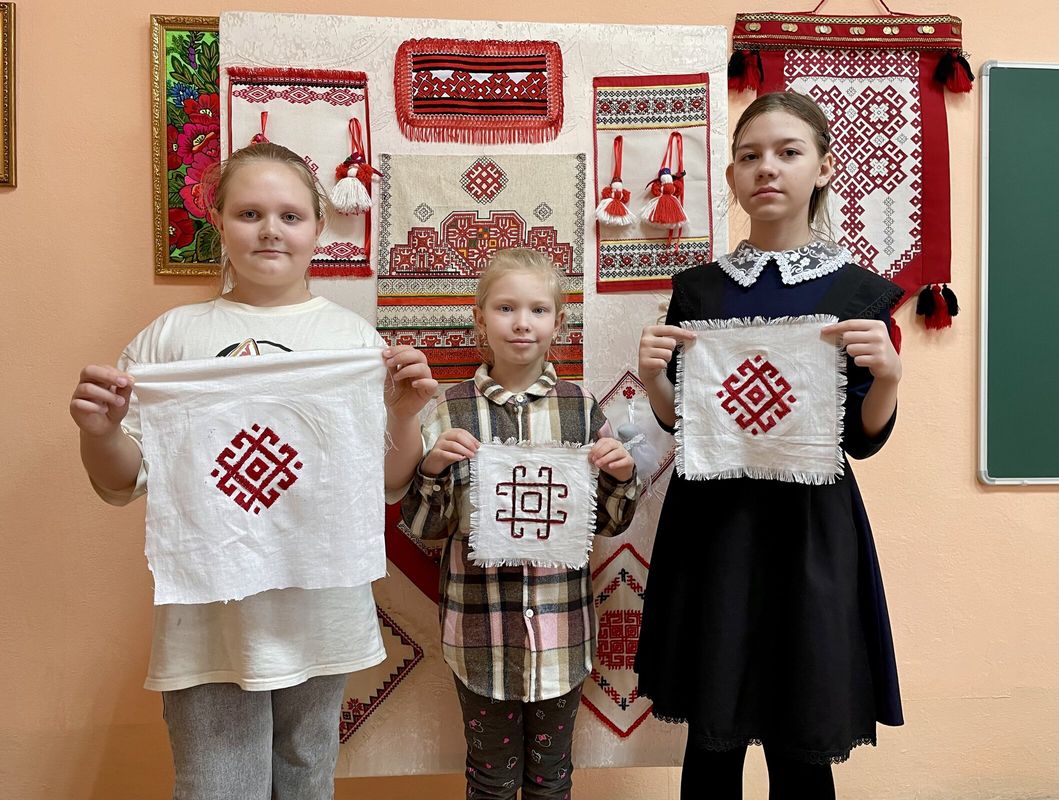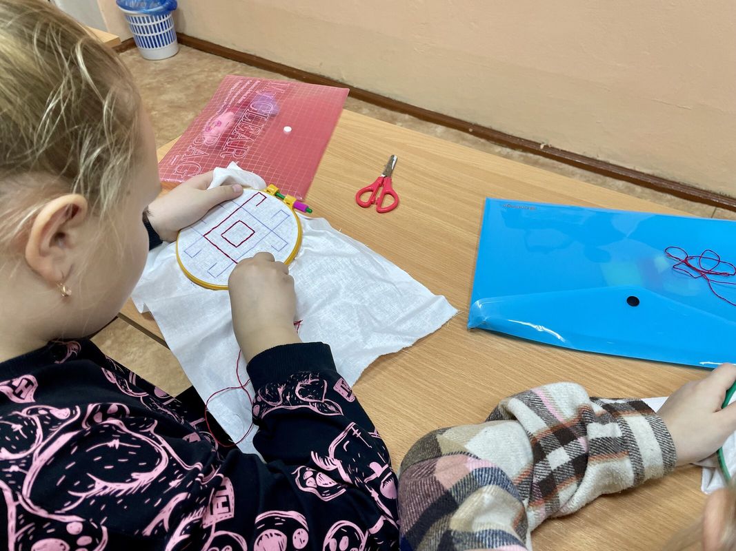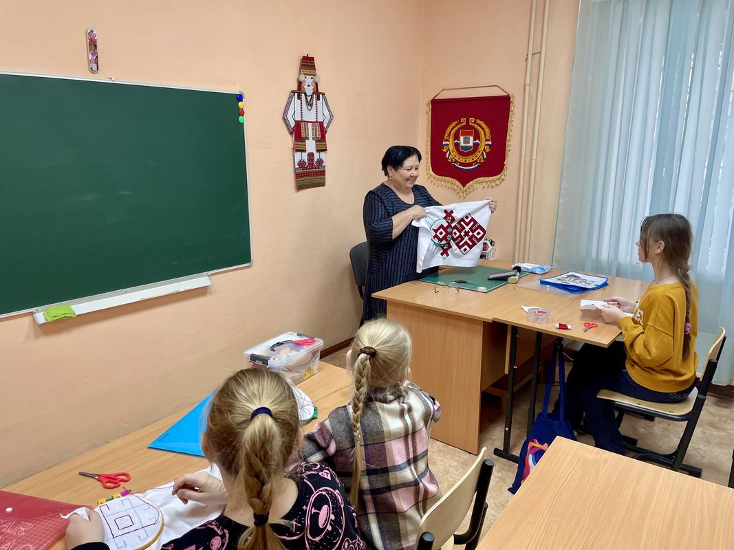 На занятиях творческого объединения «Мастерица» девочки вместе с педагогом Мироновой Ларисой Ильиничной учатся основам мордовской вышивки.
