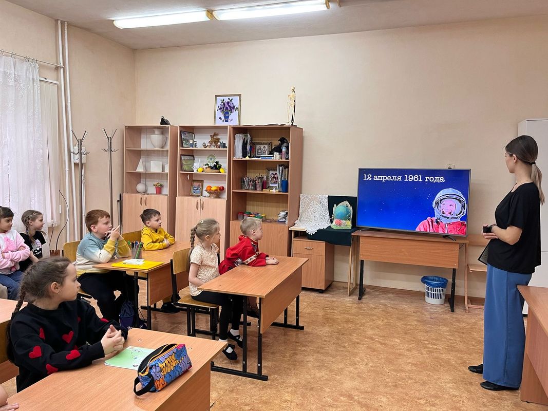 9 апреля педагог-организатор Навратова Светлана Павловна провела тематическое занятие «Космическое путешествие». Дети познакомились с историей возникновения праздника, слушали рассказы о Юрии Гагарине и других героях, которые покорили космос, таких как Леонов, Терешкова, Титов и других. Во время занятия ребята не только получали новую информацию, но и с большим удовольствием участвовали в космической викторине.