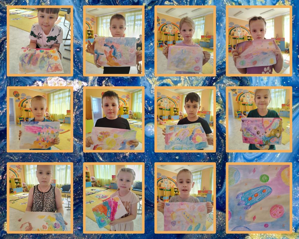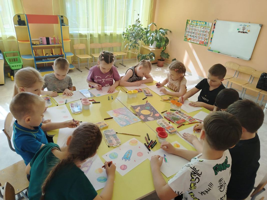 Воспитанники с.п "Красносельцовский детский сад" с педагогом центра "Тяштеня" Кочкаревой Натальей Валентиновной попробовали нетрадиционное рисование восковыми мелками и акварелью «Космос»