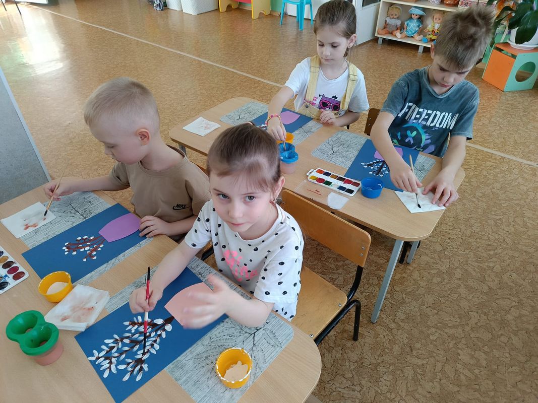 Воспитанники кружка "Волшебные краски" детского сада №18 вместе с педагогом дополнительного образования Центра "Тяштеня" Сураевой Галиной Арсентьевной беседовали об изменениях в живой природе с приходом весны.Рисовали веточки вербы, передавая форму, величину, расположение частей, соблюдая пропорции. Получились красивые веточки в вазе .