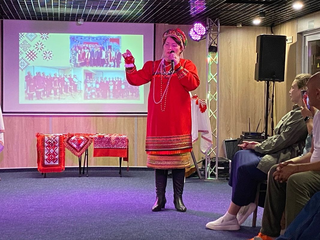 Директор центра «Тяштеня» Тишкина Анна Ивановна рассказала о работе с детьми и о том, как прививается любовь к своей культуре и языку. Также была организована выставка мастера декоративно-прикладного творчества Мироновой Ларисы Ильиничны.