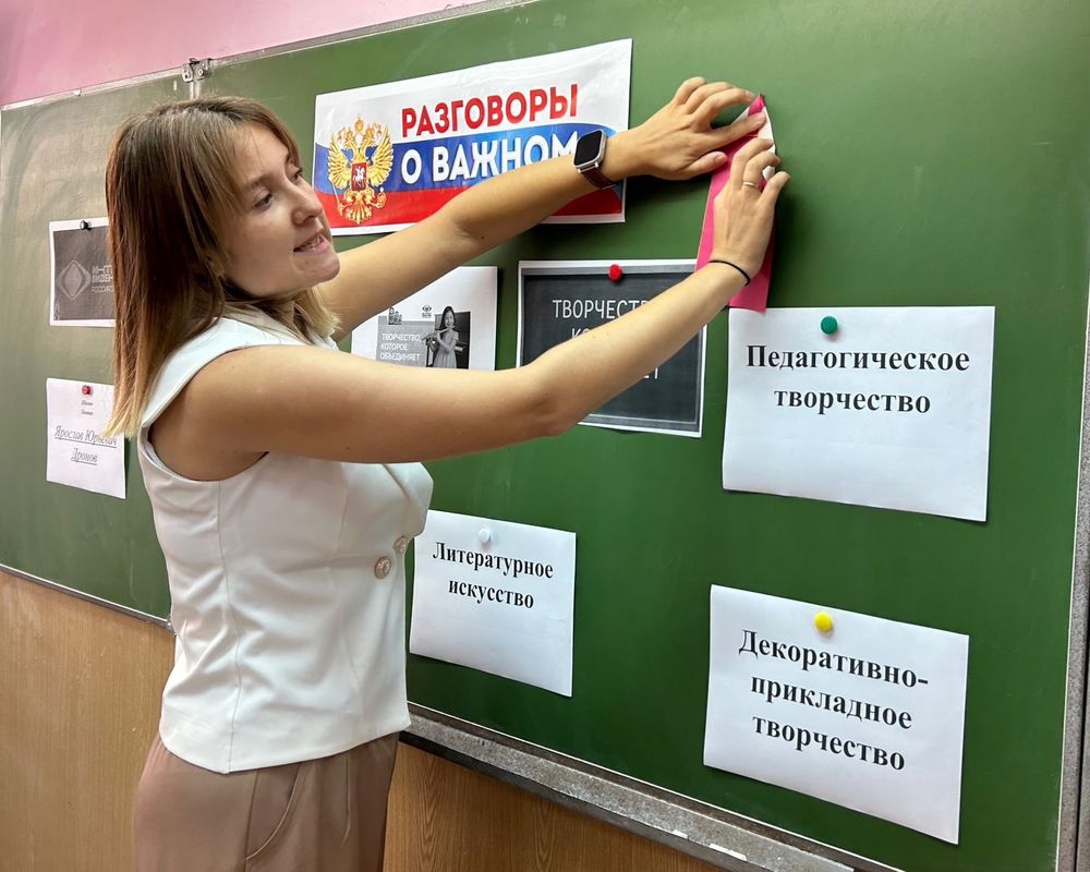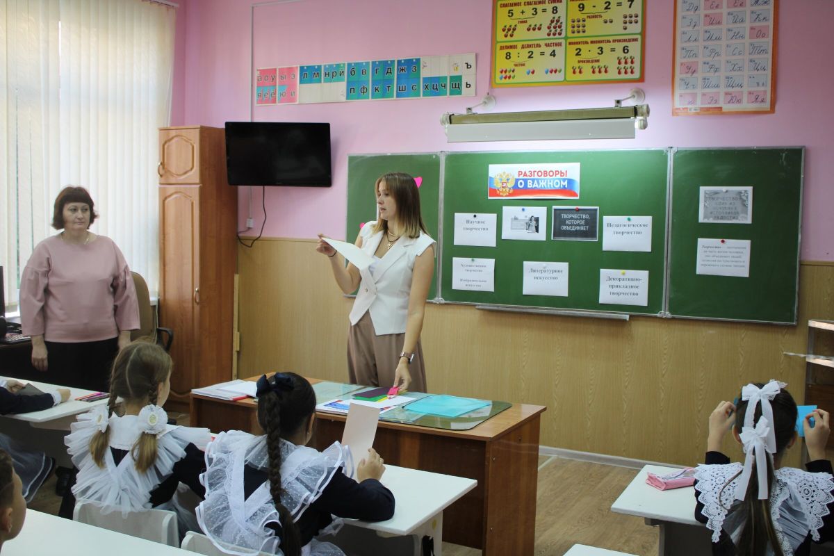 После церемонии в 4 Б прошло занятие «Разговоры о важном» по теме "Творчество, которое объединяет". На данном мероприятии педагог дополнительного образования Центра «Тяштеня» Калякулина Алина Александровна провела мастер-класс «Закладка «Карандаш» в технике оригами»