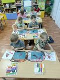 Педагог Кожевникава Светлана Александровна с ребятами детского сада №13 провела занятие по лепке в технике пластилинографии "Снегирь на ветке рябины".